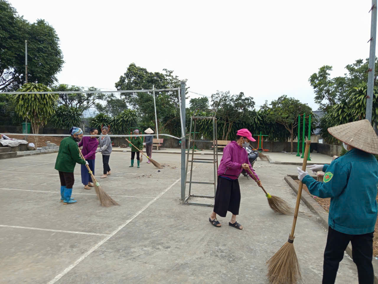 Chị em tham gia dọn dẹp vệ sinh, làm sạch cảnh quan trên địa bàn
