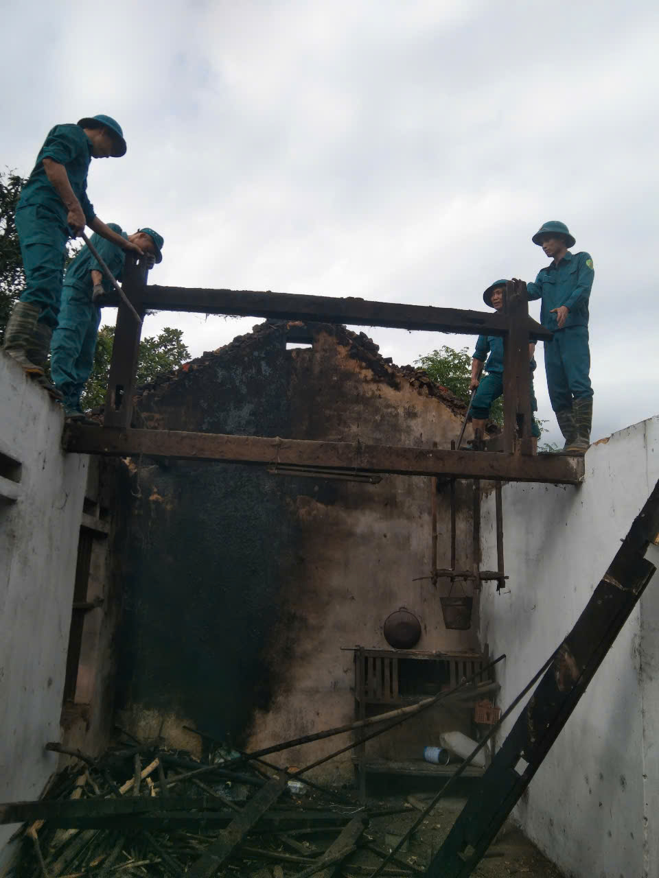 Trước tình hình đó, Ban Chỉ huy Quân sự xã đã huy động lực lượng dân quân thường trực phối hợp cùng các đoàn thể, cơ sở xóm tổ chức ra quân hỗ trợ nhân dân khắc phục hậu quả. Các chiến sĩ dân quân đã tích cực giúp gia đình thu dọn đồ đạc, di chuyển đồ đạc đến nơi an toàn, thu dọn cây cối ngã đổ và vệ sinh môi trường sau bão. Trước đó, ngay trong ngày 23/7/2025, sau khi bị ảnh hưởng do mưa lớn, Hội LHPN xã đã kịp thời đến thăm hỏi, động viên gia đình ông Quyết.