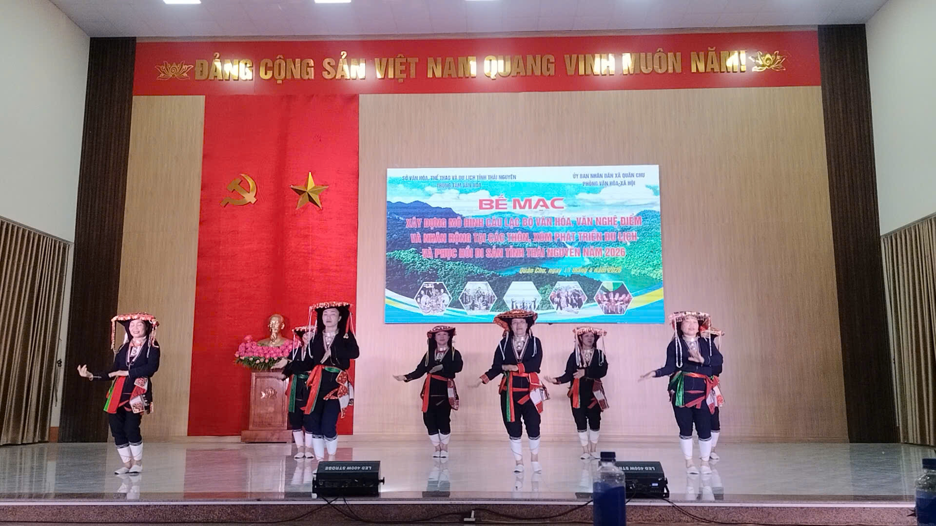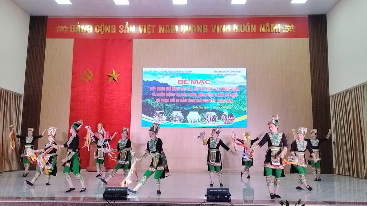 Tối ngày 13/4/2026, tại Hội trường Trung tâm văn hoá – thể thao xã Quân Chu, chương trình “Xây dựng mô hình văn hoá, văn nghệ điểm và nhân rộng tại các thôn, xóm phát triển du lịch và phục hồi di sản tỉnh Thái Nguyên năm 2026 đã bế mạc sau thời gian triển khai nghiêm túc, hiệu quả.